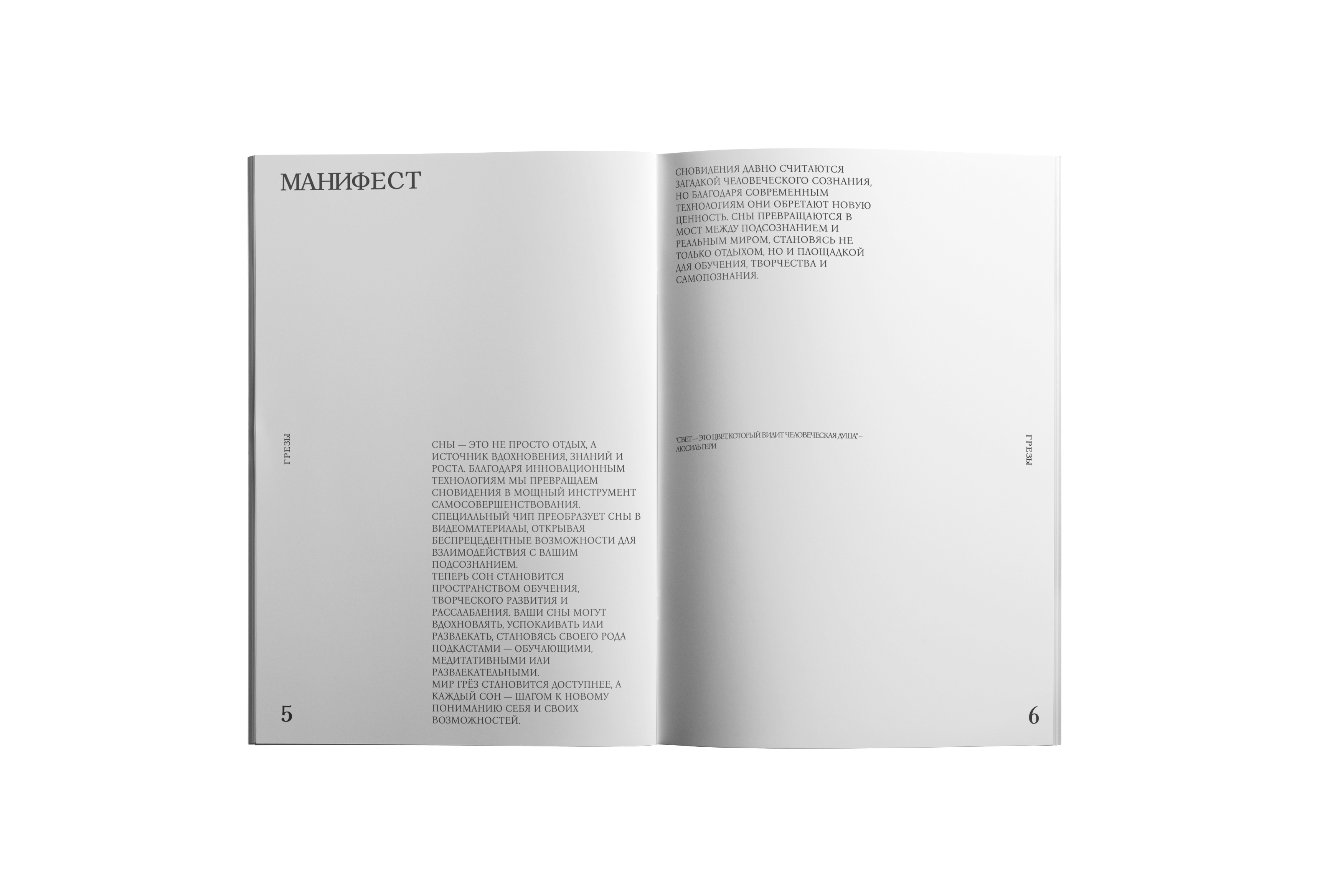 Dreamspace — экспериментальный зин, посвящённый исследованию пространства и света в нетрадиционных форматах. Эта книга малого формата празднует пересечение фотографии, типографики и пространственного дизайна, создавая захватывающее визуальное повествование.