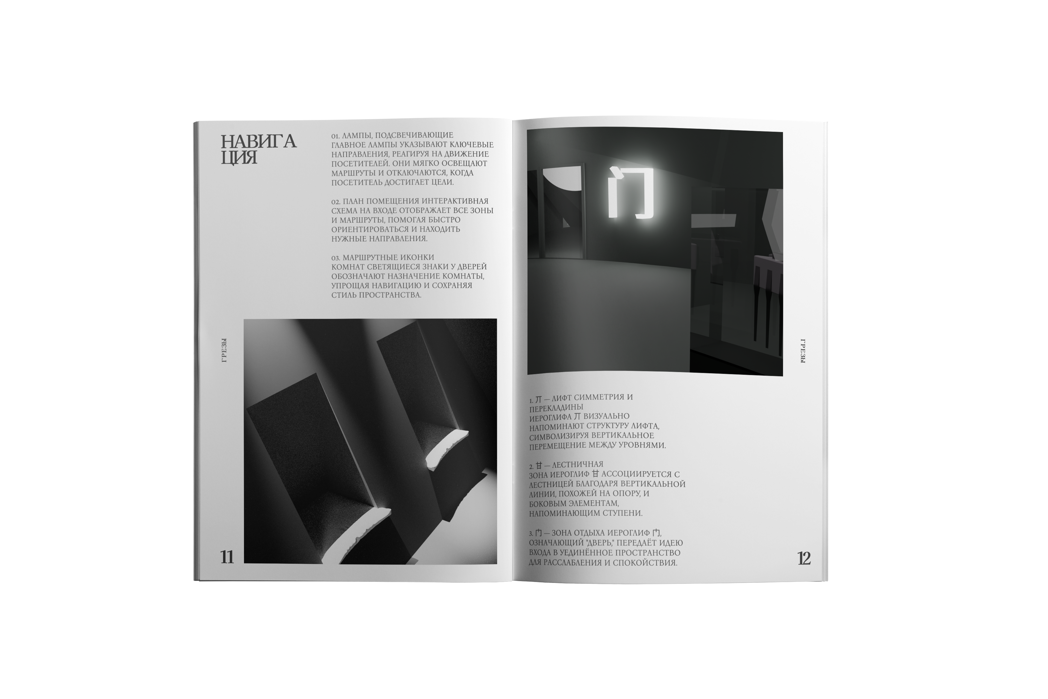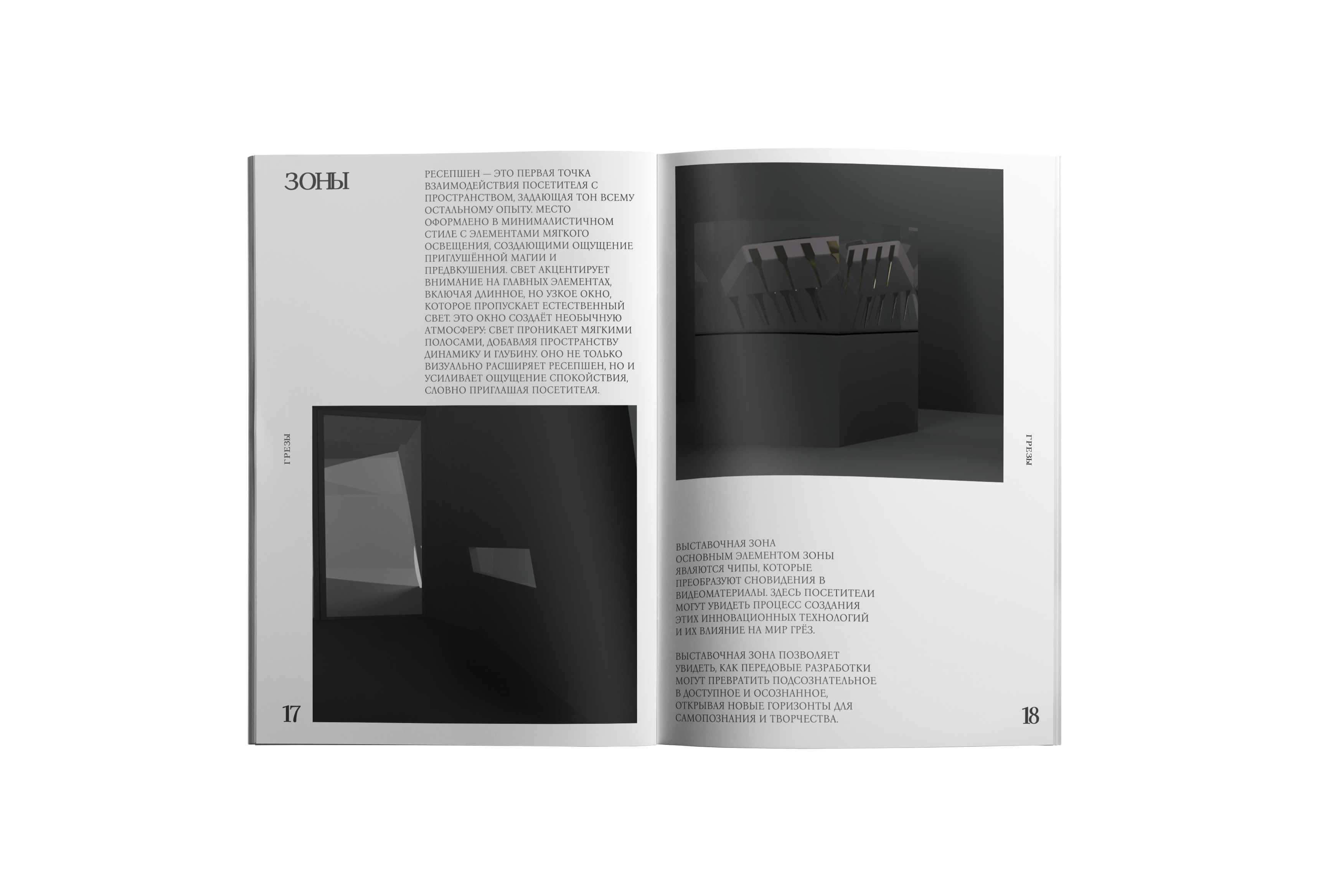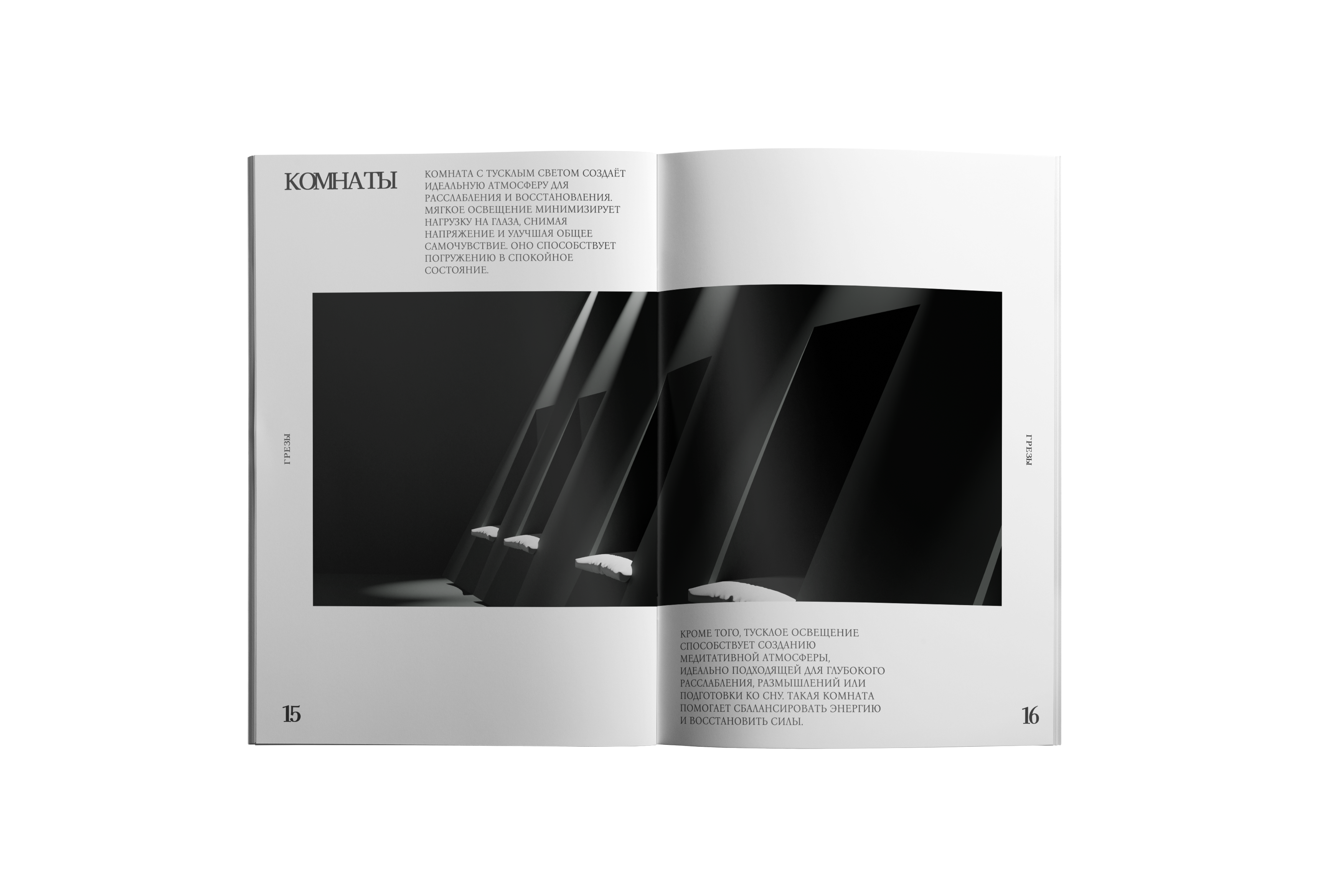 scroll downКаждый разворот тщательно скомпонован для исследования того, как свет трансформирует восприятие и формирует наше понимание физической среды.